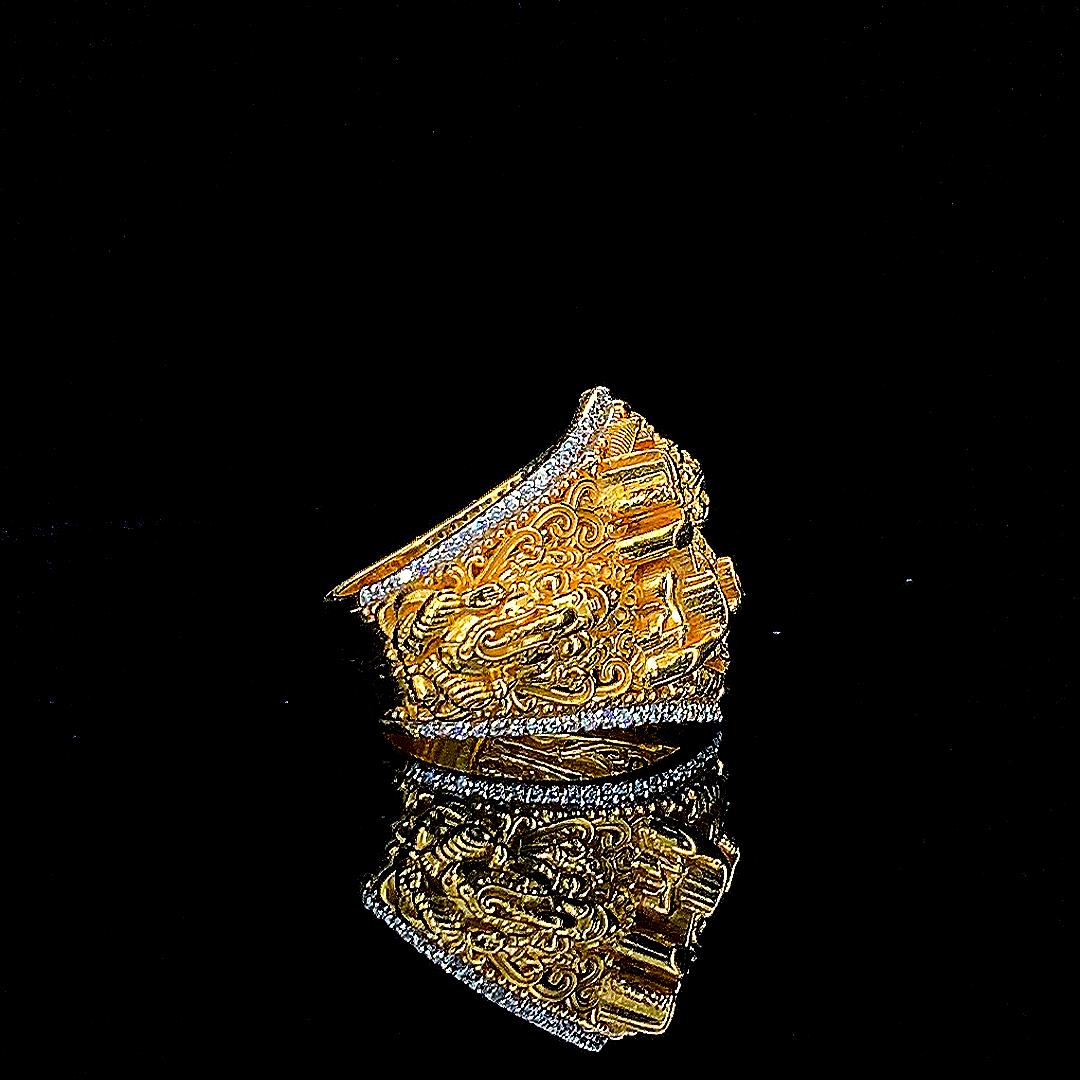 🔱 Shiv Parivaar 18K Yellow Gold Ring – 18g | 0.50 ct Natural Diamonds | Indian Size 18 (Customizations Available)